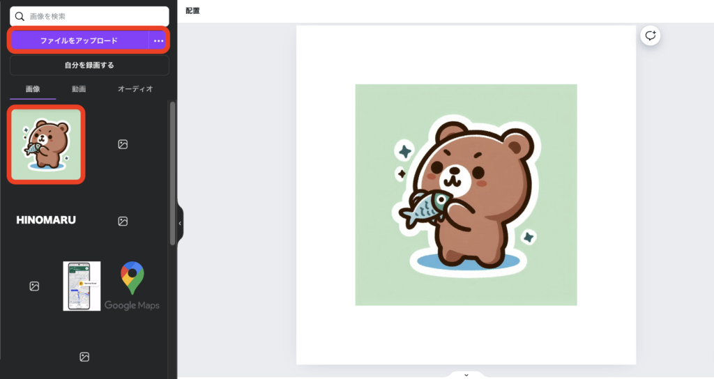 次に画像を選択し「画像を編集」から「背景除去」を選択し、 クマの背景を透過させます。