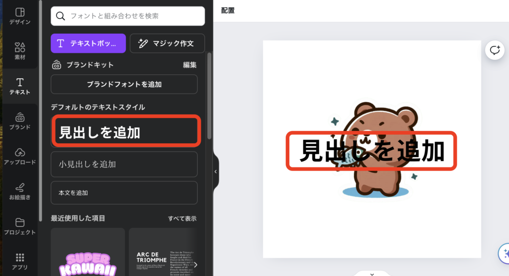 左部メニューから「テキスト」を選択し、「見出しを追加」を選択します。