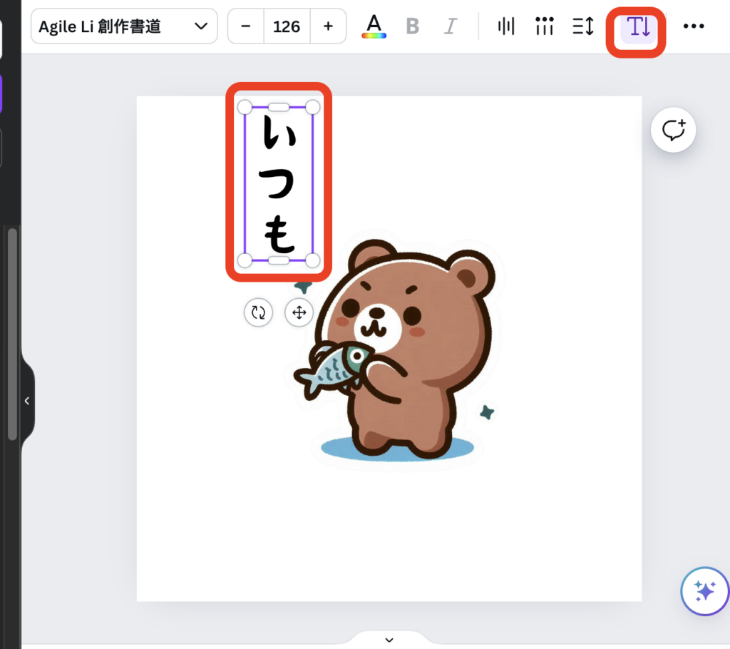 次にフォントを縦書きにします。以下の画像の右上にあるアイコンを押すと、縦書きにすることができます。