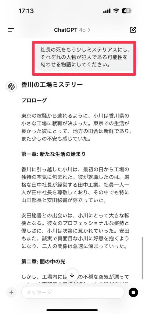 物語の内容を見て、修正してほしい内容や、付け加えて欲しい内容がある場合は追加の指示文章を送ります。